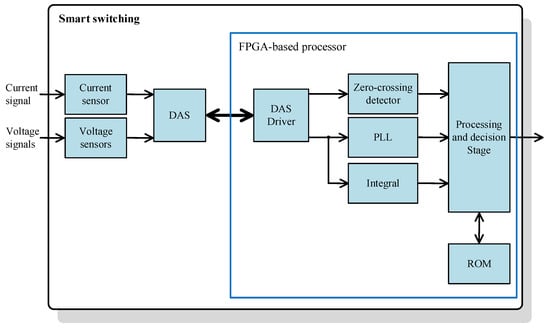 Figure 10 illustrates the block diagram outlining the general architecture of the proposed smart switching system. The system delineates into three primary stages: primary sensors, a data acquisition system (DAS), and an FPGA-based processor.