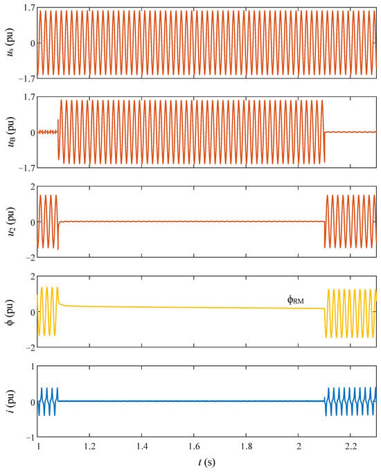 On the other hand, given the commonly low values of primary winding resistance and primary leakage inductance in PV installations, the expression for energization flux, detailed in Equation (3), is applicable.