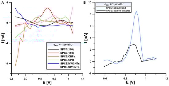 3.1. Selection of the Sensor and Influence of Electrochemical Activation on ACY Signal