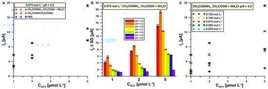 3.2. Supporting Electrolyte Composition—Impact of Concentration and pH Value