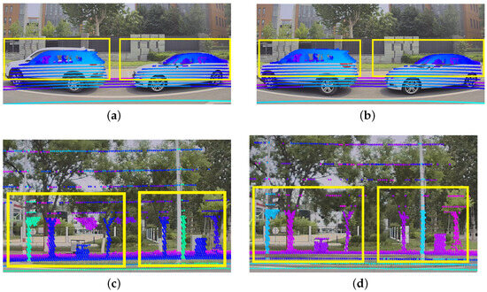 The target-based method is the most commonly used approach for LiDAR–camera calibration. This method uses markers such as chessboard patterns to establish data association and performs calibration by minimizing reprojection errors between different sensors [2,3,4]. This method often requires specific calibration setups and even manual intervention. Discontinuous LiDAR point clouds can cause incorrect data associations and calibration failure in the presence of noise.