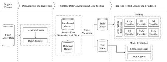 Consumption data obtained from the ISSDA dataset were subjected to data analysis and preprocessing. Malicious synthetic data were generated by exposing the real data to the attack vectors. Real and malicious data were aggregated, and the prepared datasets were used to train the proposed models. In this section, the ISSDA dataset, data analysis and preprocessing processes, attack vectors, and recommended hybrid CNN-based approaches are presented. Additionally, the GAN method used in generating synthetic data is presented.