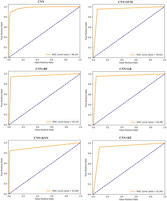 The overall detection performances were tested for each attack vector, as well as for the hybrid dataset encompassing various attack vectors. Evaluation metrics were presented for each algorithm. The performance of algorithms varied across different attack scenarios and balanced datasets. We used five-fold cross validation and presented the mean of the folds with standard deviation in the tables. SVM, LR, RF, KNN, DT algorithms were used with CNN for classification. In order to determine the best CNN-based model, a comparative analysis was performed. Since our hybrid models work on balanced datasets, the accuracy, DR, F1-score metrics stand out in terms of evaluating the prominent performance metrics.