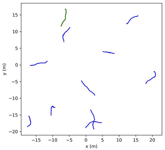 Current literature has explored more noise-robust extensions of nonlinear least squares for triangulation. Systems using robust statistical techniques can mitigate the impact of outliers in measurements [19,20,21]. Some employ reformations of the reweighed least squares (IRLS) methods [22], while others transform the LSQ problem using a majorization–minimization (MM) approach [23]. While these methods usually look at static environments, some mobile beacon-based location methods track the anchor’s messages and localize themselves based on the message history [24,25]; however, even in these cases, the tracked nodes are static.
