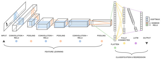 The outputs of the convolution layers are activated by Rectified Linear Unit (ReLU) and are then passed as input into their subsequent 1D max-pooling layers with a size of 4. The operation of the 1D max-pooling layer can be expressed as follows []: