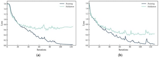 Given that the collection of MSPDD results derived from actual projects is time-consuming and labor-intensive, it is reasonable to take the size of the sample set into consideration. Figure 6a–d demonstrate the iterative learning procedure of the loss function considering sample numbers equal to 1000, 2000, 4000 and 8000. As expected, as the number of samples increases, the loss function drops faster and the validation loss derived from the validation set converges to a smaller value, which corresponds to better learning efficiency. Taking advantage of the early stopping technique, the iteration stops when the validation loss has a tendency to increase in later iterations, which can effectively suppress overfitting and strengthen the generalization ability of the model, especially for a small sample set (e.g., Figure 6a).