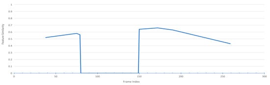 Figure 6 displays the variation in similarity between the lady’s ReID feature in each frame and the corresponding tracking pool’s feature. The lady vanishes at frame 80 and her tracks are interrupted for several frames. When she reappears at frame 150, her current ReID feature still maintains high similarity with her tracking pool’s feature.