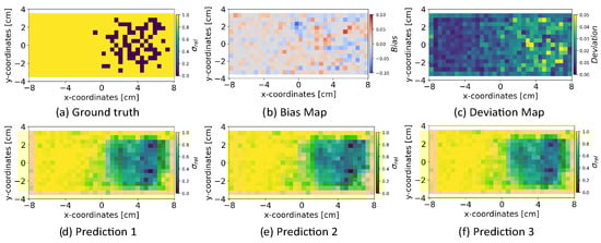 where is the deviation at pixel , and is the average predicted conductivity at pixel across all iterations. Hence, the per-pixel deviation map estimates the variability in the model’s conductivity predictions across multiple instances of sensor noise. It also elucidates the model’s sensitivity to noise in sensor readings. Together, the bias and deviation maps offer an effective way to analyze the specific strengths and weaknesses of a model to solve the inverse problem, enabling a deeper understanding of the model’s behavior under realistic noisy conditions.