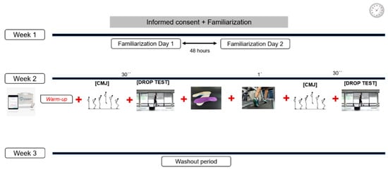 Between the test sessions, there was a washout period of at least 1 week to allow the muscles to relax. Figure 1 depicts the study design.