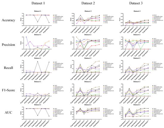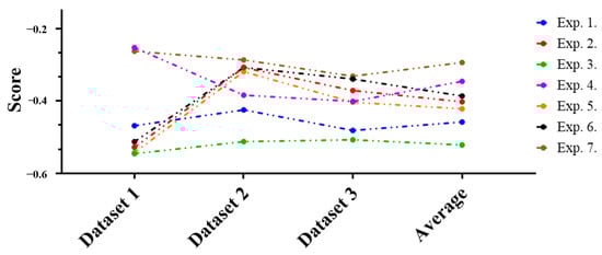 Analyzing the results, in Experiment 1, Dataset 2 showed the smallest decrease in performance, in that order, Dataset 2 in Experiment 2, Dataset 3 in Experiment 3, Dataset 1 in Experiment 4, and Dataset 2 in Experiment 5, Dataset 2 and Experiment 6, and finally, Dataset 1 in Experiment 7 showed the lowest performance decrease. Analyzing these results in terms of efficient dataset selection, Dataset 1 showed the lowest performance decrease in Experiments 4 and 7, Dataset 2 showed the lowest performance decrease in Experiments 1, 2, 5, and 6, and finally, Dataset 3 showed the lowest performance decrease in Experiment 3. In summary, Dataset 3 with 1 decrease is the most efficient dataset, Dataset 1 with 2 decreases is the next most efficient dataset, and finally, Dataset 2, which shows the 4 most decreases, is evaluated as the most inefficient dataset.