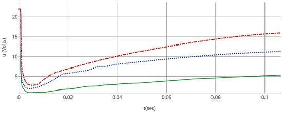 - Position and Angle Sensors: Resistance varies linearly with the rotation angle for potentiometer-based angle sensors. If is the resistance at 0 degrees and Rmax is the maximum resistance at the maximum rotation angle, the relationship can be expressed in Equation (9), as follows: