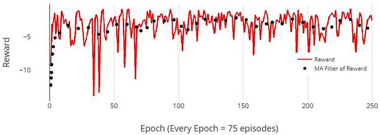 The actor’s objective is to maximize the expected Q-values. The policy gradient ascent is performed using the deterministic policy gradient theorem. The gradient of the objective function, with respect to the actor parameters, is described in Equation (7), as follows:
