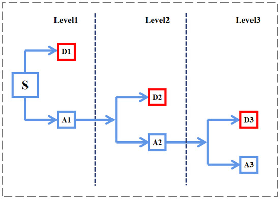 For the selection of the wavelet basis function, the db3 wavelet is utilized. The db3 wavelet, developed by Ingrid Daubechies, a renowned scholar in wavelet analysis, is orthogonal, bi-orthogonal, tightly supported, approximately symmetric, and supports discrete wavelet transform. This wavelet serves as a sparse basis, introducing minimal smooth errors and ensuring a relatively smooth signal reconstruction process. In this study, a 3-level decomposition is employed. Figure 1 illustrates the wavelet decomposition process. The signal, denoted as S, is initially filtered using specialized low-pass and high-pass filters to generate a low-pass subband (A1) and a high-pass subband (D1). Following the Nyquist criterion, half of the samples are discarded. For subsequent decomposition levels, the same technique is iteratively applied to the low pass subband (A1) to produce the narrower subbands, A2 and D2, and so on.