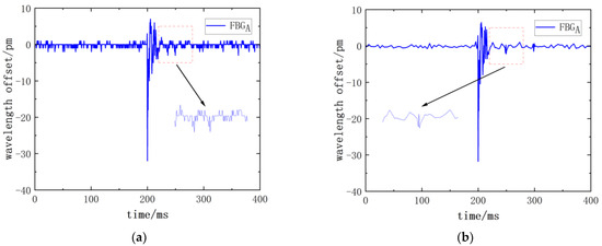 The influence of discrete wavelet transforms denoising on the response signal of FBG sensor (a) before signal denoising and (b) after signal denoising.