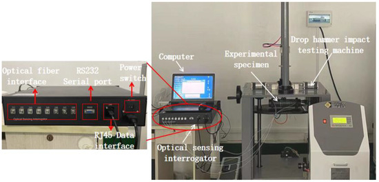 The experimental setup for impact monitoring consists of several components, including a portable computer for data storage, a carbon fiber composite tube with four FBG sensors attached to it, an optical sensing interrogator with a sampling frequency of 2000 Hz, and a drop hammer impact tester equipped with an anti-secondary impact device. A comprehensive depiction of the experimental setup is provided in Figure 3.