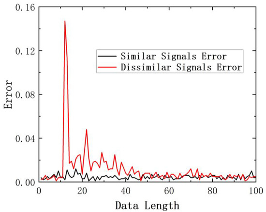 Based on the response signals obtained from the low-velocity impact test, it is evident that there is a significant disparity between the response signals acquired at different impact positions, while the difference between the response signals acquired at the same impact position is minimal. Figure 13 illustrates a comparison of the errors between signals at the same impact position and signals at different impact positions. It is evident that the peak error for signals from different impact positions is larger compared to the peak error calculated between signals from the same impact position.