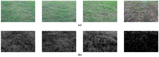 The imaging sub-system then extracts white pixels representing vegetation features from each plot and calculates the percentage of white pixels in each plot in the field using Equation (4), and these data allow for an accurate assessment of the distribution of vegetation in the field.