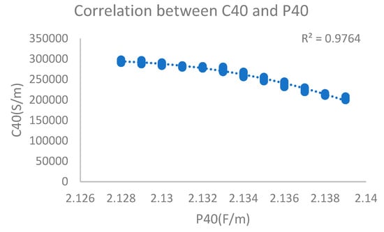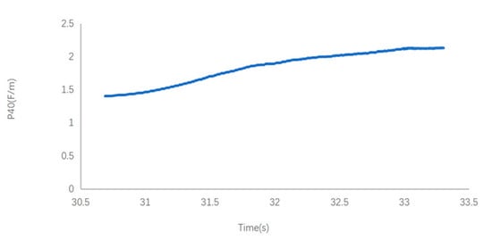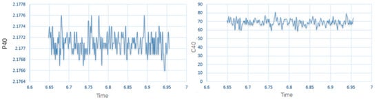 Oil sample electrical conductivity and permittivity could be read by a computer connected to the sensor. The results measured using LubMonPClight software (Software Zoom PC-Visualization and Recording Software for Oil Sensors) are illustrated as Figure 6 (under the system-defined reference temperature, the dielectric constant was represented by P40, and the electrical conductivity was represented by C40).
