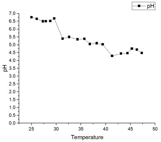 Using a temperature-controlled heating and stirring device, the same group of oil samples was heated and evaluated, and the oil sample pH was measured at different temperatures. The obtained results are summarized in Figure 8.