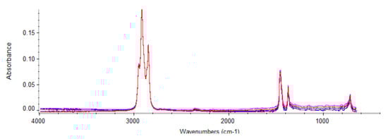 Using OMNIC software, background spectra were collected before the collection of sample spectra in order to subtract the effects of moisture and carbon dioxide in the atmosphere. Then, a pipette was used to absorb a quantitative amount of the oil sample to be sided, which was dropped evenly on the ZnSe crystal of the attenuated total reflection accessory, and the collection of the spectrum of the oil was started.