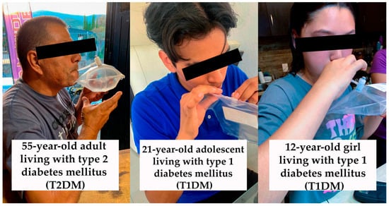 Patients with T2DM and T1DM in the exhaled-breath sample collection procedure.