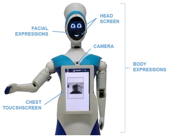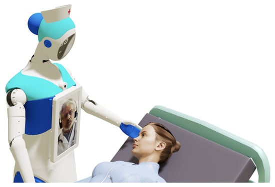 In [], the authors evaluated how a robot’s appearance influences patients’ acceptance levels of it as well as related medical procedures. Physical features are crucial in the design of social robots; this entails how people would perceive the effectiveness of the device, as studied in []. Indeed, anthropomorphic animal social robots, as suggested in [], could present an appealing alternative to humanoid robots in the role of future companions for hospital treatment. However, these could be considered toys for child patients to avoid being viewed as less effective than other options by adults. Moreover, the robot design process must consider features of hospital or care environments to guarantee prolonged usability []. Therefore, functionality could not be fully scrolled by the robot’s appearance.