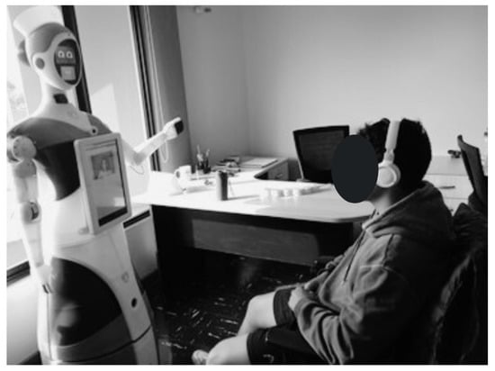 In the field of mental health, SARs (socially assistive robots) can serve a multitude of roles, ranging from diagnosis to treatment and rehabilitation []. In the diagnostic domain, social assistive robots have demonstrated efficacy in assessing mental, psychiatric, and neurological disorders, as indicated by research such as that conducted by Rasouli []. The ability of these robots to engage with users on a social and emotional level enhances the diagnostic process, offering an understanding of an individual’s mental health.