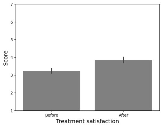 To evaluate satisfaction with the treatment received, the Consumer Reports Effectiveness Scale (CRES-4) was used []. Participants responded to a four (04)-item questionnaire to capture three main components: satisfaction, problem-solving, and perception of emotional change. Finally, participants were posed with the question: “How comfortable would you be with the use of robots to provide psychological care?”. On a 5-point Likert scale, participants could select from “Not at all” to “Completely agree”.