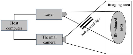Active imaging technology uses a laser as the light source to illuminate the gas to be measured, and the detector then receives the reflected light for imaging. The use of such a tunable narrowband laser as the primary illumination source is independent of any background radiation, and thus provides lower detection limits and better spectral resolution. Nutt et al. [61] constructed a portable methane detection imager using InGaAs laser diodes and InGaAs focal plane sensors that weighed 3.2 kg. This imager can be installed in a kitchen ceiling to monitor leakage from natural gas pipelines. With a detection range of up to 3 m, this imager has a lower detection flow limit of 0.05 L/min. Li et al. [62] detected leaked methane gas using Tunable Diode Laser Absorption Spectroscopy (TDLAS) technology. A schematic diagram of their active laser imaging system is shown in Figure 10. They used a semiconductor laser with a central wavelength of 1.653 μm to irradiate methane gas at a distance of 10 m. A leakage rate of 1 L/min was detected, and the imaging effect is quite evident.