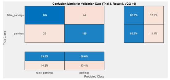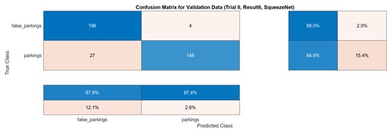 Continuing the experiment, after carrying out the initial tests, we tried to optimize several hyperparameters like the solver, the mini-batch size, and the learning rate. Performing an exhaustive sweep and checking the performance, we observe that the use of sgdm as a solver produced far inferior results, while the mini-batch size produced better results, with a value of 64. In Figure 11, we can see the confusion matrix, while in Table 3, we can see all of the metrics.