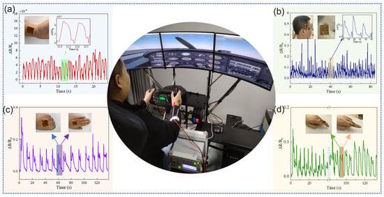 Flexible strain sensor based on LIG for body detection and motion capture for pilots. (a) Pulse detection. (b) Blink detection. (c) Hand grip and stretch test. (d) Finger curvature detection.