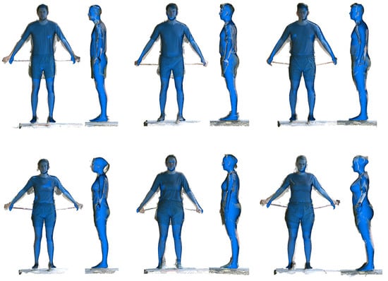 - Zhang, C.; Pujades, S.; Black, M.J.; Pons-Moll, G. Detailed, Accurate, Human Shape Estimation from Clothed 3D Scan Sequences. In Proceedings of the 2017 IEEE Conference on Computer Vision and Pattern Recognition, Honolulu, HI, USA, 21–26 July 2017; pp. 4191–4200. [Google Scholar]