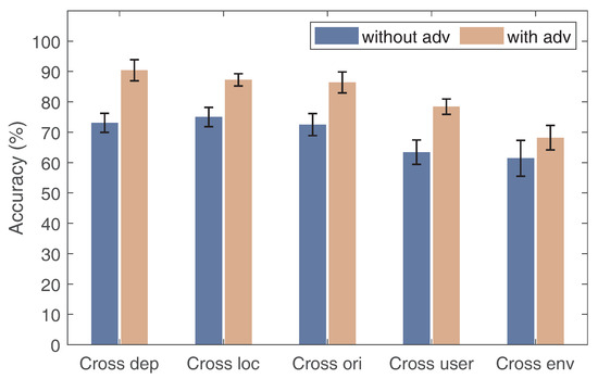 - Wang, J.; Wang, C.; Yin, D.; Gao, Q.; Liu, X.; Pan, M. Cross-scenario device-free gesture recognition based on self-adaptive adversarial learning. IEEE Internet Things J. 2021, 9, 7080–7090. [Google Scholar] [CrossRef]
