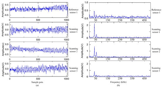 As shown in Figure 1a,b, a reference sensor is placed in a fixed position and works simultaneously with the scanning sensor to remove the interval time difference . The signal collected by the reference sensor can be written as follows: