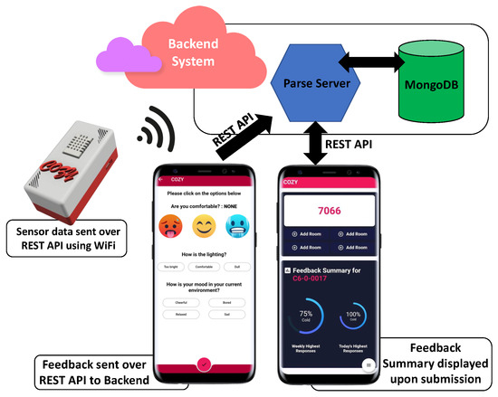 This section provides details on a variety of aspects of the proposed solution such as the system architecture, design, data processing, deployment, and pilot trial. The proposed solution consists of two parts—a hardware prototype for gathering fine-grained data from the premises being monitored and a smartphone app to enable occupants to provide feedback on their experience in the premises. Unless stated otherwise, in the remainder of this paper we will refer to these as the ‘Cozy System’ and the ‘Cozy App’, respectively. We also use the term ‘Cozy Solution’ to refer to the complete solution encompassing both of the above.