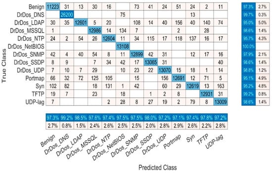The dataset supporting the findings of this study are derived from previously published datasets, which have been cited within the manuscript. Available online: https://www.unb.ca/cic/datasets/ddos-2019.html (accessed on 23 December 2023).