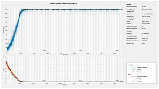 Figure 19 illustrates validation accuracy, which is consistently higher than training accuracy and steadily increases throughout training. The final validation accuracy of 99.07% demonstrates the model’s high accuracy in classifying new data. The alignment between training and validation accuracy suggests that the model has learned data patterns without overfitting, indicating strong generalization to unseen data.