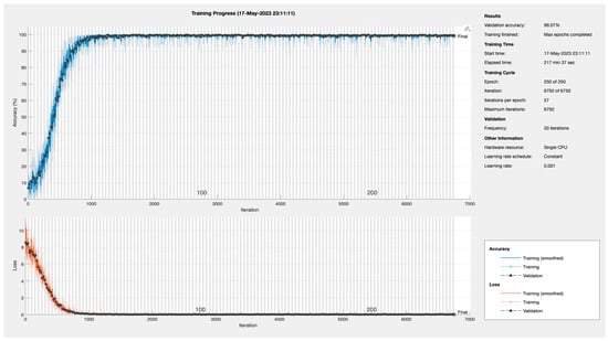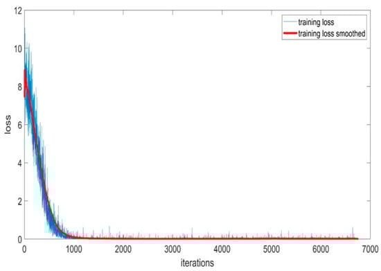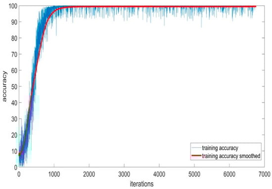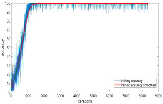 Figure 18 displays the training accuracy and smoothed training accuracy of the BaysFusCNN model during 250 training epochs. Each epoch comprises 27 iterations, and the model uses a learning rate of 0.001.