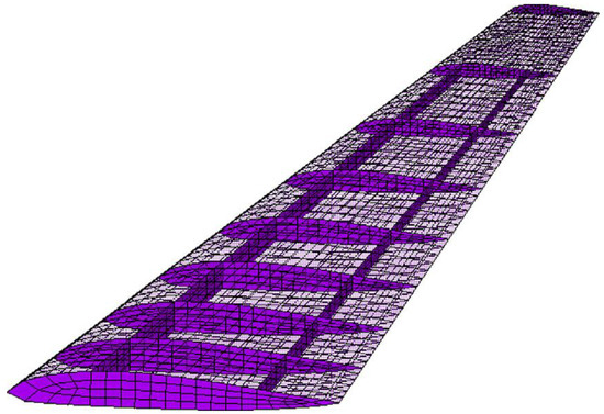 An aeroplane is undoubtedly an intricate complex of numerous integrated systemic constituents, each meticulously designed to manoeuvre a predetermined section as its purpose. These structural subsystems are vulnerable to the risk facets involved in the flight undertakings, particularly the wings, which are subjected to severe circumstances encompassing myriad reverberations and vibratory jolts. For the examination of the robustness and structural coherence of the wings, a specified wing of precisely two and one-half meters in gauge, comprising ribs, skins, and spars, was selected as a further paradigm to evaluate the posited MOHGPSO. The marginally constrained FE model, i.e., with a riveted pinion at the core, has been exemplified in Figure 8. Expecting an expedient evaluation, specifically the out-of-plane DOF directions were considered as nominal sensor positions in Particle Swarm. Additionally, the modes and frequencies in Table 2, and also demonstrated in Figure 9, were used as the HGPSO load, while placing the ten considered sensors within the depicted wing framework. During MOHGPSO’s convergence at the 9th step, the contributions of the EfI and EVP are perceived to have an overall dominance.