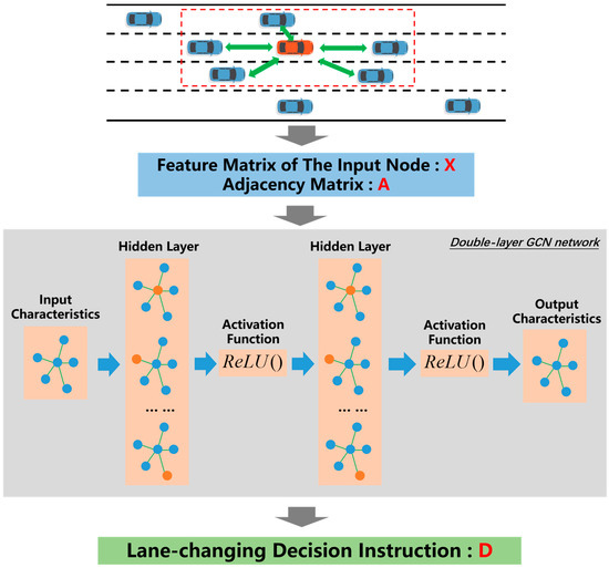 - Taking position, speed, and acceleration information as input, the GCN model of the driving environment is constructed, and then a vehicle decision-making method is proposed that comprehensively considers the interaction between autonomous vehicle and driving environment information, and better reflects the influence of other vehicle information on lane change decisions of the autonomous vehicle.