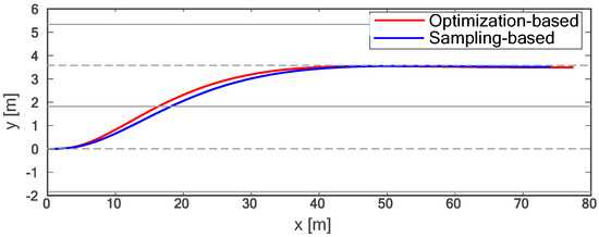 - Miller, C.; Pek, C.; Althoff, M. Efficient Mixed-Integer Programming for Longitudinal and Lateral Motion Planning of Autonomous Vehicles. In Proceedings of the 2018 IEEE Intelligent Vehicles Symposium (IV), Changshu, China, 26–30 June 2018. [Google Scholar] [CrossRef]
