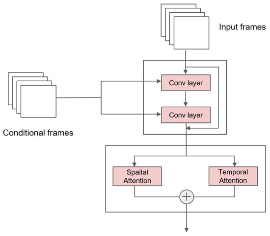 where represents convolutional layers. To combine the input with processed conditions, the sub-block uses shortcut connections, which add the input to its convolutional output to deliver information directly and integrate it with refined conditional features. Since the main purpose of this sub-block is to involve incorporated guidance, we used space-only 2D convolutions instead of 3D convolutions to reduce total costs.