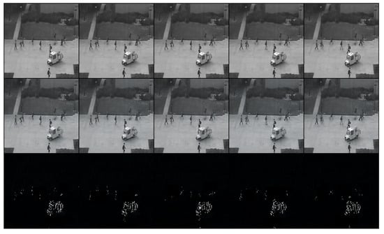 In Figure 7, the red boxes in the upper row indicate the abnormal polluted dust in the surveillance systems, and the white pixels in the bottom row represent the abnormal areas identified by the proposed method, which are bounded by the red boxes. It can be seen that our proposed method successfully identifies most of the abnormal dust in the video sequence. From Table 2, our method achieved in AUC, which outperforms the current models, and in EER, which is competitive with the compared models.