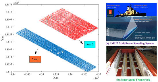The multi-beam sounding dataset was derived from the Liwan 3-1 survey area in the South China Sea, where the depth of seawater is at least 1250 m. The Liwan 3-1 Gas Field Deepwater Drilling Platform is the largest deepwater drilling platform in China. Real time understanding of the seabed terrain around drilling is crucial for the stability of the platform. Two pieces of sounding data with different fluctuations were selected to analyze the detection performance of sounding outliers for estimating the quality of underwater terrain. Among them, the terrain of Area 1 is relatively more complex, with 20 Ping of sounding data. There is a total of 25 Ping depth measurement dataset in Area 2. The terrain is relatively flat with higher density, but there are relatively more anomalous values in depth measurements. Figure 2 shows the location of the measurement area and the information of collection equipment.