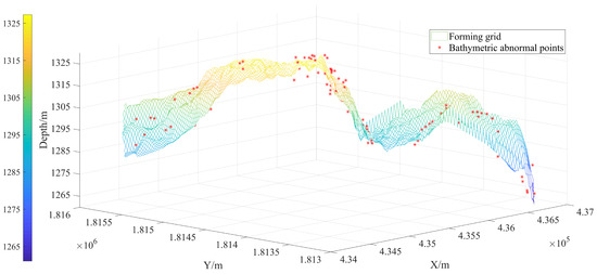 The estimated depth value at the designated point is calculated by Equation (15). Furthermore, the residual error is compared with the criterion of triple mean square error to achieve fine judgment of small outliers.
