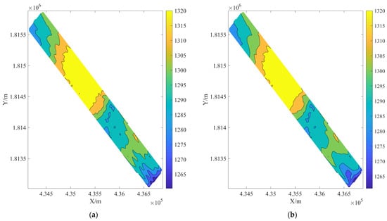 The effect of contour map after removing outliers. (a) original bathymetry set. (b) the results of robust estimation in the DRS technology.
