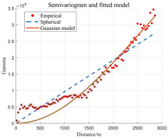 The variation function values of regular spacing are calculated based on the distribution and characteristics of known observed sample points. The relationship between γij and dl was analyzed to fit the model parameters. Subsequently, the actual values of variation function between known points, between estimated points and known points, were obtained. Theoretical fitting models of the variation function frequently employed the spherical and Gaussian models [].