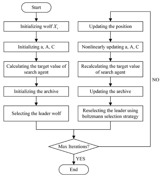 The execution flow of the MBB-MOGWO algorithm is presented in Figure 3.