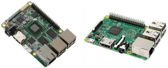 Intel UpBoard (left) and Raspberry Pi 3B (right).