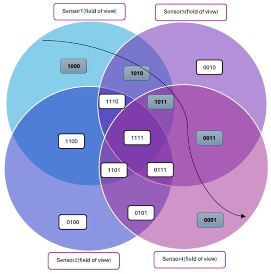 Binary PIR for localization: Some PIR-based localization systems rely on binary data obtained from PIR sensors’ raw output, which essentially informs whether a person is present or not within the sensor’s detection zone. The accuracy of localization using this approach is contingent on finely dividing the detection zones. Put simply, the smaller and more precisely defined these individual zones are, the more precise the localization becomes. However, achieving this high level of precision necessitates deploying a substantial number of PIR sensors and implementing a meticulous deployment strategy. Yang et al. developed a cost-effective and compact system for tracking humans using a network of PIR sensors [64]. When a sensor detects a person, it activates a detection line along the angular bisector of its field of view (FOV). The system is designed for easy calibration, requiring only one sensor node to be calibrated instead of the entire setup, enhancing flexibility with a bearing-crossing location technique. After that, Yang et al. combined this method with region partitioning to pinpoint multiple human locations [65,66], initially using a probabilistic neural network or naive Bayes classifier for rough positioning, followed by the bearing-crossing method for greater accuracy.
